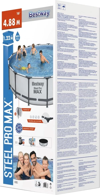 Basen stelażowy Bestway Steel Pro Max 16 FT + 5 w 1 + drabinka + pokrywa 488 x 122 cm (6942138983388)