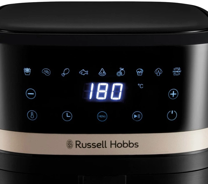 Russell Hobbs SatisFry 27610-56 multicooker to kompaktowy frytkownica powietrzna o pojemności 4.3 l i mocy 1300 W, która umożliwia gotowanie ulubionych potraw z minimalną ilością oleju dzięki technologii cyrkulacji gorącego powietrza. Wyposażona jest w 9 automatycznych programów (frytki, kurczak, mięso, ryby, pizza, warzywa, pieczenie, suszenie, podgrzewanie), dotykowy panel sterowania, wyświetlacz LCD, regulację temperatury od 40°C do 200°C i timer. Dodatkowe funkcje obejmują przypomnienie o mieszaniu, automatyczne wyłączanie, powłokę nieprzywierającą, antypoślizgową podstawę i możliwość mycia części w zmywarce. Idealny wybór dla osób ceniących zdrowe odżywianie, wygodę i nowoczesny design.