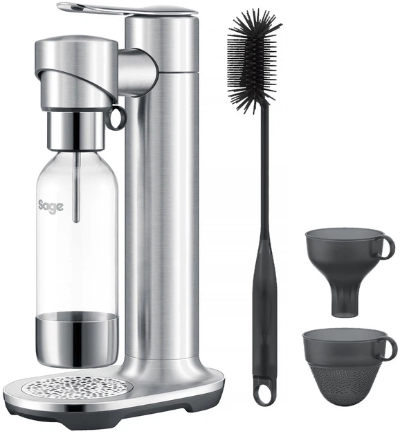 Sage InFizz Fusion White to stylowy i wszechstronny aerator, który dzięki innowacyjnej nakrętce FusionCap pozwala na nasycenie dwutlenkiem węgla nie tylko wody, ale także soków, herbat, koktajli, wina i innych napojów. Zapewnia on pełną kontrolę nad procesem nasycania dwutlenkiem węgla, umożliwiając szybkie lub powolne uwalnianie CO₂ w zależności od rodzaju napoju. Unikalny system przekręcania i blokowania z ergonomicznym pierścieniem sprawia, że obsługa jest prosta i intuicyjna, a szczotkowana stal nierdzewna i odlewana dźwignia nadają urządzeniu ekskluzywny wygląd. Magnetyczna tacka ociekowa utrzymuje wszystko na swoim miejscu, zapewniając porządek podczas pracy. Zestaw zawiera butelkę o pojemności 1 litra z dnem i pokrywką ze stali nierdzewnej, nakrętkę FusionCap, szczoteczkę do czyszczenia, lejek i sitko, co pozwala na wygodne przygotowywanie i przechowywanie napojów gazowanych. Aerator jest kompatybilny z butlami CO₂ GASUP i BRITA SodaONE 425 g, które są sprzedawane oddzielnie.
