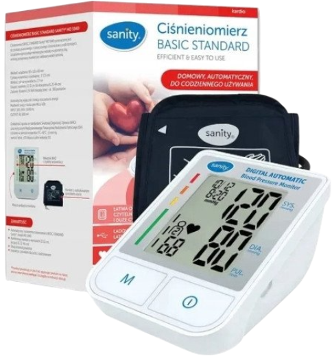 Тонометр Sanity MD 5940 — це зручний та функціональний електронний прилад для домашнього контролю артеріального тиску, розроблений для двох користувачів і здатний зберігати до 120 вимірювань на кожного. Осцилометричний, неінвазивний метод вимірювання забезпечує точні результати, а функція 7‑денного усереднення допомагає відстежувати динаміку показників упродовж тижня. Пристрій оснащений великим 3‑дюймовим РК‑дисплеєм із чіткими цифрами 2.7 см, автоматичним надуванням манжети та автоматичним вимкненням для економії енергії. Стандартна манжета підходить для обхвату руки 22–32 см, а за потреби можна використовувати манжету XL (22–44 см). Тонометр працює як від батарейок, так і від мережі, підтримує живлення через micro USB та має функцію виявлення аритмії. Компактні розміри 83 × 110 × 60 мм роблять його зручним для зберігання та використання вдома чи в дорозі. Це сертифікований (CE) прилад, створений для надійного щоденного моніторингу тиску.