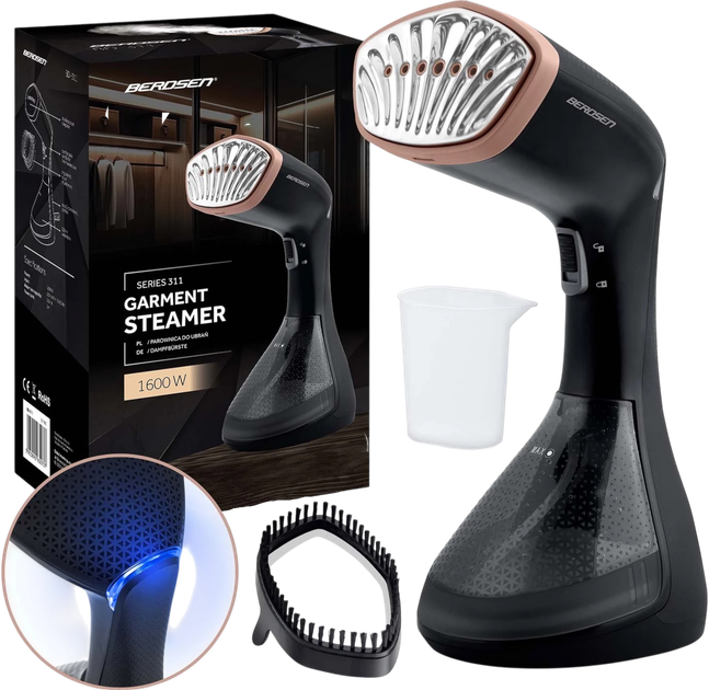 Parownica Berdsen BD-311 (czarna) to kompaktowe i wydajne urządzenie przeznaczone do szybkiej i wygodnej pielęgnacji ubrań bez użycia żelazka czy deski do prasowania. Dzięki mocy 1600 W szybko się nagrzewa i generuje strumień pary do 26 g/min, co pozwala skutecznie wygładzić zagniecenia, odświeżyć tkaniny i wyeliminować nieprzyjemne zapachy. Pojemny zbiornik o pojemności 230 ml zapewnia komfortowy czas pracy, a zasilanie 220–240 V zapewnia kompatybilność z większością sieci domowych. Wygodny kabel o długości 2 m gwarantuje swobodę ruchów podczas prasowania. W zestawie znajduje się nasadka szczotkowa, zbiornik na wodę i konewka do wygodnego napełniania. To praktyczne rozwiązanie dla osób, które chcą szybko posprzątać ubrania w domu lub w podróży.