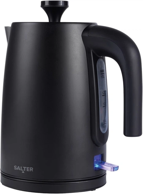 Czajnik elektryczny SALTER Kuro EK5632MBLK to połączenie minimalistycznego designu, wysokiej funkcjonalności i niezawodnej jakości do codziennego użytku. Model jest wykonany w głębokim matowym czarnym kolorze, który nadaje kuchni nowoczesny i stylowy wygląd i łatwo komponuje się z każdym wnętrzem. Czajnik zapewnia szybkie zagotowanie wody, pozwalając zaoszczędzić czas podczas przygotowywania herbaty, kawy lub innych gorących napojów. Optymalna pojemność 1.7 l nadaje się zarówno do użytku domowego, jak i biurowego. Korpus wykonany jest z wytrzymałych i trwałych materiałów, odpornych na wysokie temperatury, a ukryty element grzejny ułatwia czyszczenie i zmniejsza tworzenie się kamienia. Automatyczne wyłączanie po zagotowaniu i ochrona przed przegrzaniem zapewniają bezpieczeństwo podczas użytkowania. Obrotowa podstawa o 360° gwarantuje wygodę użytkowania dla osób prawo- i leworęcznych, a wbudowany filtr przeciw osadzaniu się kamienia pomaga zachować czystość wody i lepszy smak napojów. SALTER Kuro EK5632MBLK stanie się praktycznym i stylowym akcentem w Twojej kuchni, łącząc komfort, bezpieczeństwo i estetykę.