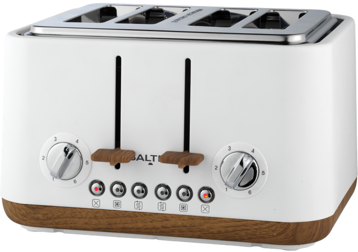 Toster SALTER Toronto EK5823WHTVDE to nowoczesne, stylowe i funkcjonalne urządzenie zaprojektowane z myślą o komforcie codziennego użytkowania. Dzięki czterem szerokim komorom z łatwością pomieści grube kromki chleba, bajgle, muffinki, ciasta i inne wypieki, dzięki czemu przygotowanie śniadania jest szybkie i wygodne. Model wyposażony jest w 6 poziomów opiekania, regulowanych za pomocą dwóch oddzielnych tarcz – pozwala to opiekać różne rodzaje pieczywa jednocześnie, zgodnie z preferencjami każdego członka rodziny. Funkcja samocentrowania gwarantuje równomierne opiekanie z obu stron, a wysoki podnośnik ułatwia usuwanie nawet małych kawałków. Dla dodatkowej wygody toster posiada przyciski rozmrażania, podgrzewania i anulowania, zapewniające pełną kontrolę nad procesem. Wyjmowana tacka na okruchy znacznie ułatwia czyszczenie i pomaga utrzymać porządek w kuchni. Stylowy design linii Toronto sprawia, że ten toster jest nie tylko praktyczny, ale także estetycznym dodatkiem do kuchni. Idealnie komponuje się z innymi urządzeniami z tej serii, tworząc harmonijny i nowoczesny zestaw.