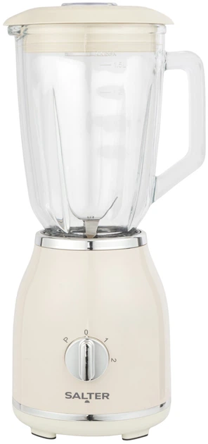Blender SALTER EK6687CRMVDE to stylowy blender retro ze szklaną misą o pojemności 1.5 litra. Wyposażony jest w dwie prędkości i tryb pulsacyjny. Wytrzymałe ostrza ze stali nierdzewnej w kształcie krzyża zapewniają szybkie i równomierne miksowanie. Wyjmowany szklany dzbanek ułatwia nalewanie i mycie. Urządzenie nadaje się do przygotowywania koktajli, smoothie, sosów i codziennych czynności kulinarnych.