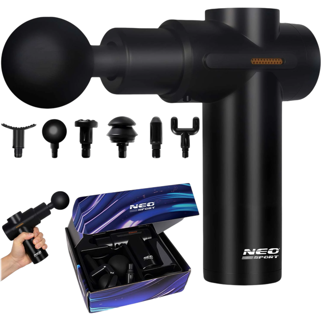 Masażer Neo Sport NS-504 to kompaktowy i stylowy, bezprzewodowy pistolet do masażu, przeznaczony do codziennego rozluźniania i regeneracji mięśni. Wyposażony jest w 6 poziomów intensywności, co pozwala na wybór optymalnej mocy masażu – od lekkiego relaksu po głębszą pracę mięśni. Ergonomiczna konstrukcja zapewnia wygodny uchwyt i komfort użytkowania nawet przez długi czas, a zabezpieczenie przed przegrzaniem i certyfikat CE gwarantują bezpieczeństwo użytkowania. Zestaw zawiera 6 wymiennych końcówek, w tym w kształcie litery U, kulistą, płaską, punktową, grzybkową i łukową, co pozwala na efektywny trening różnych grup mięśni i obszarów ciała. Urządzenie jest zasilane bateryjnie i ładowane przez USB typu C, co zapewnia pełną mobilność i wygodę użytkowania w domu, na siłowni lub w podróży.