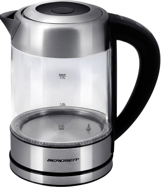 Czajnik elektryczny Berdsen BD‑714 to stylowy i praktyczny czajnik szklany, przeznaczony do szybkiego i wygodnego zagotowania wody. Moc 1850–2200 W zapewnia szybkie nagrzewanie, a pojemność 1.7 l sprawia, że idealnie nadaje się do codziennego użytku w domu lub biurze. Szklana bańka pozwala na kontrolę poziomu wody, a dotykowy panel sterowania z wyświetlaczem dodaje nowoczesności i łatwości obsługi. Urządzenie posiada zabezpieczenie przed włączeniem bez wody, co zwiększa bezpieczeństwo, oraz obrotową podstawę 360°, która umożliwia wygodne ustawienie czajnika z dowolnej strony. Zasilany jest z sieci 220–240 V, 50/60 Hz, co gwarantuje stabilną i niezawodną pracę. To funkcjonalny i stylowy wybór dla osób ceniących jakość i nowoczesny design.