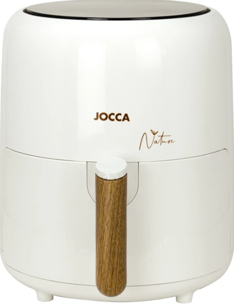 Frytkownica beztłuszczowa Jocca 3.8 l Nature White zaprojektowana z eleganckim wykończeniem i detalami imitującymi drewno, ona jest nie tylko praktyczna i wszechstronna, ale także idealnie pasuje do nowoczesnych i funkcjonalnych kuchni.