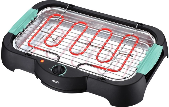 Elektryczny grill stołowy Jocca 2189 to wygodny i praktyczny grill do użytku domowego, który pozwala szybko i bez dymu przyrządzać ulubione potrawy. Dzięki wyjmowanej tacce, którą można napełnić wodą, tłuszcz się nie przypala, a grillowanie staje się czystsze i przyjemniejsze. Regulowany grill z dwoma poziomami wysokości pozwala łatwo kontrolować stopień przypieczenia, a metalowa konstrukcja nośna z izolowanymi termicznie uchwytami zapewnia bezpieczeństwo użytkowania. Urządzenie wyposażone jest w regulator temperatury i wskaźnik nagrzania, co ułatwia kontrolę procesu. Powierzchnia robocza o wymiarach 41 × 24.5 cm nadaje się do grillowania mięsa, warzyw, ryb i innych produktów, a kompaktowe wymiary 50 × 35 × 8 cm pozwalają na wygodne ustawienie grilla na stole lub balkonie. Moc 2000 W gwarantuje szybkie nagrzewanie i efektywne grillowanie.