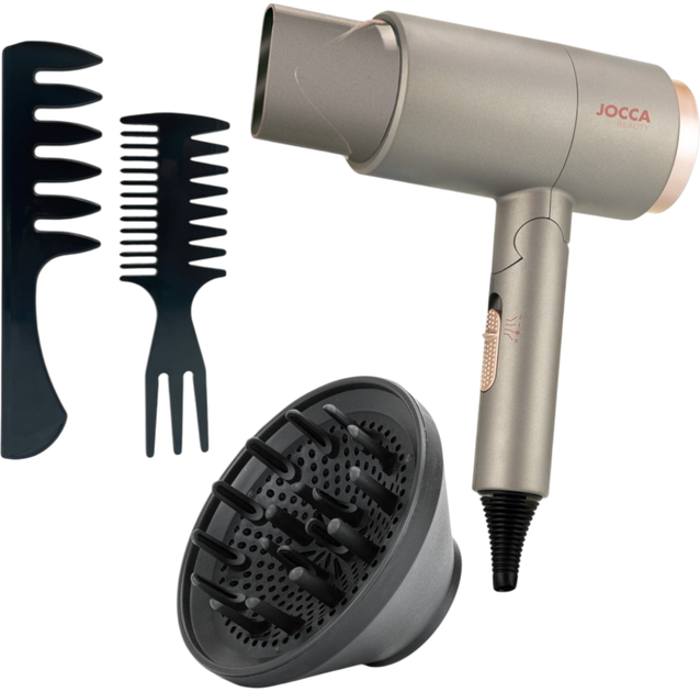 Suszarka do włosów Jocca 2317 to kompaktowa i wydajna suszarka z silnikiem prądu stałego o mocy 1800-2000 W, która zapewnia szybkie, równomierne i delikatne suszenie włosów w domu lub w podróży. Dzięki składanej rączce można ją łatwo przechowywać i zabierać ze sobą, zachowując przy tym skuteczność tradycyjnej suszarki. Model wyposażony jest w trzy tryby temperatury i dwie prędkości nadmuchu, co pozwala dostosować strumień powietrza do potrzeb różnych rodzajów włosów, a funkcja zimnego nadmuchu pomaga utrwalić fryzurę i zachować jej kształt. Zestaw zawiera koncentrator-dyfuzor i dwa grzebienie, co rozszerza możliwości stylizacji i czyni suszarkę uniwersalnym narzędziem do codziennej pielęgnacji. Działa w sieci 220-240 V, łącząc wygodę, mobilność i profesjonalne rezultaty.