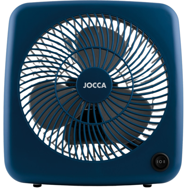 Wentylator stołowy Jocca charakteryzuje się kompaktowym, eleganckim i oryginalnym designem dzięki zaokrąglonym narożnikom i szerokiej gamie kolorów. Dostępny w kolorze niebieskim i czarnym. Jego solidna konstrukcja wyposażona jest w uchwyt ułatwiający przenoszenie oraz antypoślizgowe nóżki dla większego bezpieczeństwa. Posiada dwie prędkości i moc 30 W.