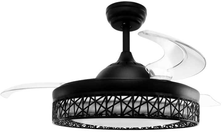 Dzięki chowanym łopatkom ABS (każda o długości 39 cm) wentylator zamienia się w dyskretną lampę, gdy nie jest używany, zachowując czysty i minimalistyczny wygląd. Po uruchomieniu łopatki automatycznie się wysuwają, zapewniając doskonałą cyrkulację powietrza. Całkowita średnica po rozłożeniu: 106 cm.