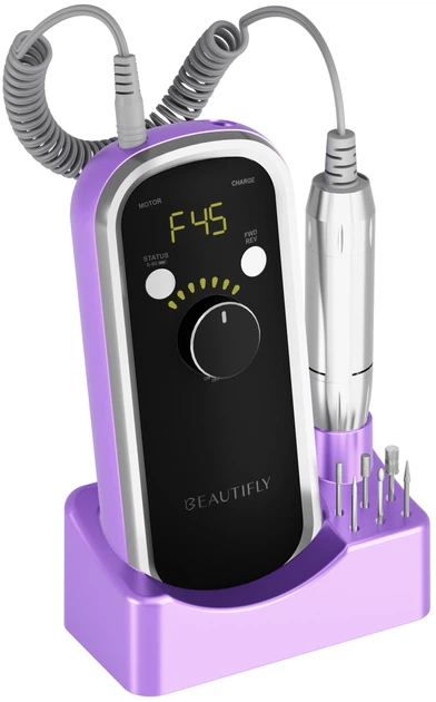 Frez do manicure Beautifly VivaNail to profesjonalne, wygodne i mobilne urządzenie stworzone z myślą o osobach ceniących precyzję i komfort pracy. Działa bezprzewodowo, jest wyposażony w wydajny akumulator o pojemności 2600 mAh i zapewnia płynną regulację prędkości za pomocą wygodnego pokrętła. Maksymalna prędkość obrotowa to 45 000 obr./min, co pozwala na łatwe piłowanie, zdejmowanie lakieru hybrydowego, opracowywanie skórek oraz pracę z różnymi technikami manicure i pedicure. Zestaw zawiera 6 frezów i 6 dysz ściernych, a cicha praca i moc 36 W sprawiają, że VivaNail to niezawodne narzędzie do codziennego użytku zarówno w salonie, jak i w domu.