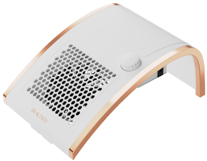 Odkurzacz do manicure Beautifly NailAir to nowoczesny i wydajny pochłaniacz pyłu przeznaczony dla profesjonalnych stylistek paznokci oraz osób wykonujących manicure w domu. Duża siła ssania i regulacja intensywności ułatwiają usuwanie pyłu powstającego podczas piłowania paznokci, zapewniając czyste i bezpieczne miejsce pracy. Urządzenie pracuje cicho, ma lekką i kompaktową konstrukcję, a wyjmowany pojemnik na pył pozwala na szybkie i wygodne czyszczenie. Solidna obudowa wykonana z trwałych materiałów gwarantuje długą żywotność i schludny wygląd. Dzięki uniwersalnemu zasilaniu i mocy do 100 W, NailAir stanie się niezawodnym pomocnikiem zarówno w salonie, jak i w domowym studiu, zapewniając komfort, wydajność i maksymalną higienę podczas każdego zabiegu.