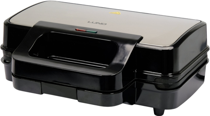 Wielofunkcyjny opiekacz LUND 67530 to wszechstronne urządzenie kuchenne z trzema wymiennymi płytami do opiekania, gofrów i grillowania, które umożliwiają przygotowywanie większych porcji dzięki dużej powierzchni grzewczej o wymiarach 28×15 cm. Powłoka nieprzywierająca zapewnia łatwe czyszczenie i zapobiega przypalaniu, a możliwość przechowywania w pozycji pionowej oszczędza miejsce w kuchni. Stylowa obudowa ze stali nierdzewnej harmonijnie komponuje się z wnętrzem, a uchwyt z powłoką zapobiegającą przywieraniu gwarantuje bezpieczne użytkowanie. Wskaźniki świetlne sygnalizują gotowość do pracy, antypoślizgowe nóżki zapewniają stabilność, a moc 900 W gwarantuje szybkie nagrzewanie i efektywne gotowanie.