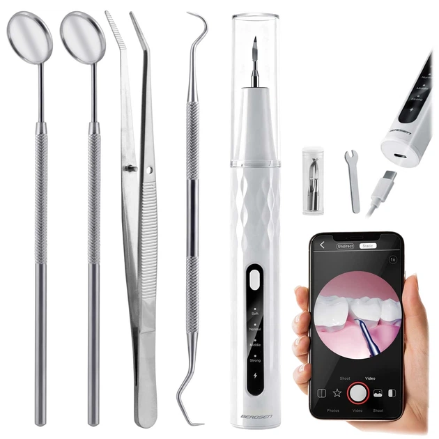Ультразвуковий зубний скалер Berdsen BD‑250 — це домашній пристрій для видалення зубного каменю, нальоту та пігментації, оснащений вбудованою камерою, що дозволяє контролювати процес очищення у реальному часі через смартфон. Він працює в 4 режимах інтенсивності, має ультразвукову металеву насадку та LED‑підсвітку для кращої видимості. Корпус ергономічний, із зручним керуванням однією кнопкою, а живлення забезпечує вбудований акумулятор, який заряджається через USB. Пристрій підходить для регулярного домашнього догляду між професійними чистками, допомагаючи підтримувати гладкість емалі та зменшувати утворення каменю.