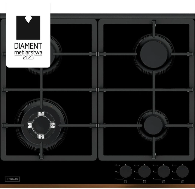 Płyta gazowa Kernau KGH 6464 Copper to stylowy model w kolorze czarnym z miedzianymi akcentami, wyposażony w 4 palniki, w tym palnik turbo WOK, który zapewnia dużą moc 2500 W do szybkiego nagrzewania. Dwa palniki mają moc 1700 W, a najmniejszy ma moc 950 W, co pozwala na wygodne gotowanie na naczyniach o różnych rozmiarach. Powierzchnia wykonana jest ze szkła hartowanego, a żeliwne ruszty gwarantują stabilność i trwałość. Model obsługuje gaz G20 i gaz płynny, wyposażony jest w automatyczny zapłon i zabezpieczenie przed wyciekiem gazu. Szerokość wynosi 59 cm, głębokość 52 cm, a wysokość 60 mm, dzięki czemu jest kompatybilna z większością mebli kuchennych. To elegancka i funkcjonalna płyta, która łączy w sobie nowoczesny design, niezawodność i wygodę codziennego użytkowania.