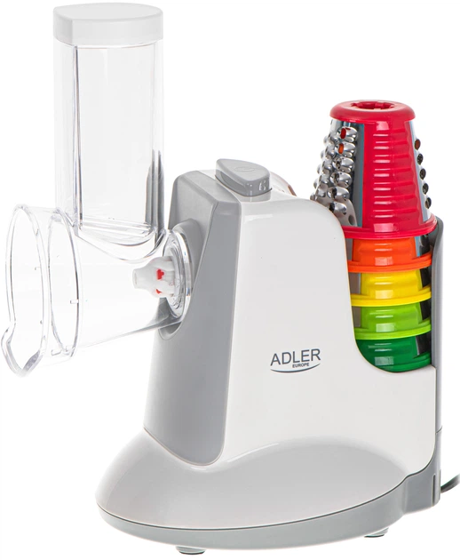 Siekaczka do warzyw Adler AD 4815 LG to wszechstronna elektryczna siekaczka, która znacznie ułatwia przygotowywanie składników dzięki 5 wymiennym końcówkom do krojenia, tarcia i mielenia. Pozwala szybko przygotować sałatki, mieszanki warzywne, farsze, desery i inne dania, zapewniając precyzyjne rezultaty dla każdego rodzaju produktu. Wszystkie końcówki są wygodnie przechowywane we wbudowanej podstawce, która pomaga utrzymać porządek w kuchni i zapewnia łatwy dostęp do akcesoriów. Antypoślizgowe nóżki gwarantują stabilność podczas pracy, a solidna konstrukcja gwarantuje trwałość i wysoką wydajność. Dzięki końcówkom do tarcia na grubo i drobno, krojenia na cienkie i grube plasterki, a także specjalnej tarce do puree, Adler AD 4815 LG staje się niezastąpionym pomocnikiem w szybkim i wygodnym przygotowywaniu różnorodnych potraw.