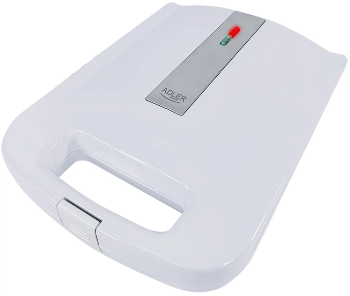 Opiekacz do kanapek Adler AD 3055 Biały to praktyczne urządzenie do jednoczesnego opiekania 4 kanapek, wyposażone w płyty grzewcze z powłoką zapobiegającą przywieraniu oraz dwa wskaźniki – mocy i grzania. Posiada dużą powierzchnię roboczą o wymiarach 24 × 22 cm, stabilne gumowe nóżki, termoizolacyjny uchwyt oraz możliwość przechowywania w pozycji pionowej, co oszczędza miejsce w kuchni. Długość przewodu zasilającego wynosi 75 cm, typ wtyczki: E/F, kolor obudowy: biały. Moc znamionowa wynosi 1400 W, maksymalna 2000 W, a zasilanie 220–240 V ~ 50/60 Hz. To wygodny i wydajny opiekacz do kanapek, który umożliwia szybkie przygotowanie ciepłych i równomiernie zapiekanych kanapek.