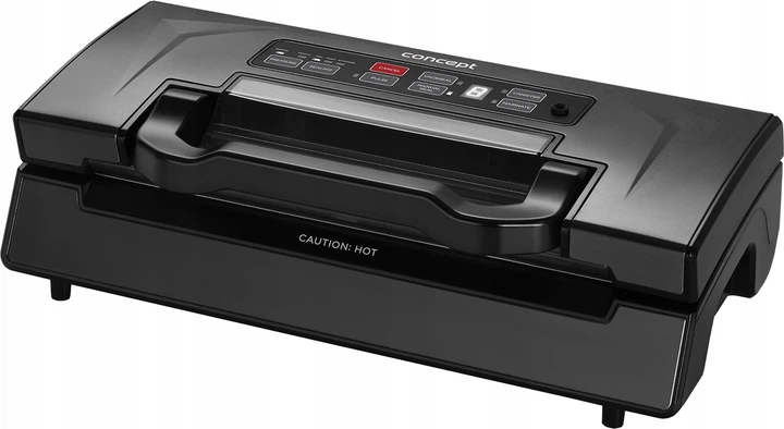 Zgrzewarka próżniowa Concept VA0060 to wydajny i wielofunkcyjny pomocnik kuchenny, zaprojektowany z myślą o jak najefektywniejszym przechowywaniu żywności. Dzięki silnikowi prądu stałego zapewnia wysoką wydajność i stabilną pracę, a podciśnienie 0.85 bara gwarantuje niezawodne usuwanie powietrza z worka. Urządzenie wyposażone jest w górną pokrywę z ciemnej stali nierdzewnej, co nadaje mu wytrzymałość i stylowy wygląd. Wygodny, czytelny wyświetlacz oferuje zaprogramowane tryby, które upraszczają proces pakowania. Podwójny zgrzew o szerokości 2.5 mm zapewnia szczelność i trwałość opakowania, a uchwyt blokujący pomaga prawidłowo ułożyć folię próżniową, zapewniając doskonały efekt. Model wykonany jest w eleganckiej czerni, ma moc 130 W i działa z sieci 220–240 V ~ 50 Hz. Concept VA0060 to niezawodny wybór dla tych, którzy chcą przechowywać żywność dłużej, marynować szybciej i gotować w technologii sous-vide z maksymalnym komfortem.