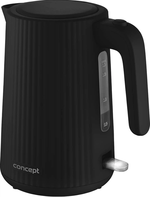 Elegancki czajnik z tworzywa sztucznego o pojemności 1.7 l wyróżnia się stylowym czarnym ryflowanym designem, który pasuje do każdej kuchni. Praktyczna kontrolka pracy z delikatnym białym podświetleniem sygnalizuje, kiedy czajnik jest włączony, zapewniając przejrzyste i bezpieczne użytkowanie. Dzięki dużej pojemności łatwo przygotujesz wystarczającą ilość gorącej wody dla całej rodziny.