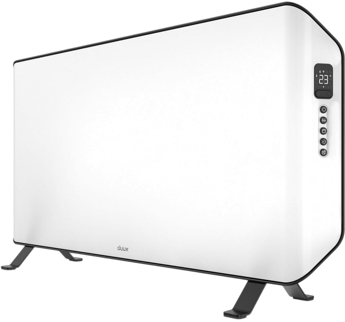 Конвектор Duux Edge у білому кольорі — це стильний, надтонкий (лише 6,5 см) та повністю безшумний (0 дБ) обігрівач, створений для комфортного та економного обігріву приміщень до 30 м². Потужність 2000 Вт забезпечує швидке нагрівання за технологією конвекції, рівномірно розподіляючи тепло без вентиляторів і неприємного шуму. Клас захисту IP24 дозволяє безпечно використовувати пристрій у ванній кімнаті, а цифровий термостат з діапазоном 5–36°C забезпечує точне налаштування температури. Завдяки Wi‑Fi та Bluetooth обігрівач легко керується через додаток Duux Smart або голосом через Alexa та Google Assistant, а програмовані розклади, таймер 1–24 год і еко‑режим допомагають економити електроенергію. Нічний режим вимикає підсвічування для комфортного сну, а потрійна система безпеки — захист від перегріву, датчик перекидання та блокування від дітей — гарантує спокій у будь-якій ситуації. У комплекті є настінне кріплення, сталеві ніжки та пульт, тож Duux Edge можна встановити саме так, як вам зручно, отримуючи стильне, тихе та ефективне тепло щодня.
