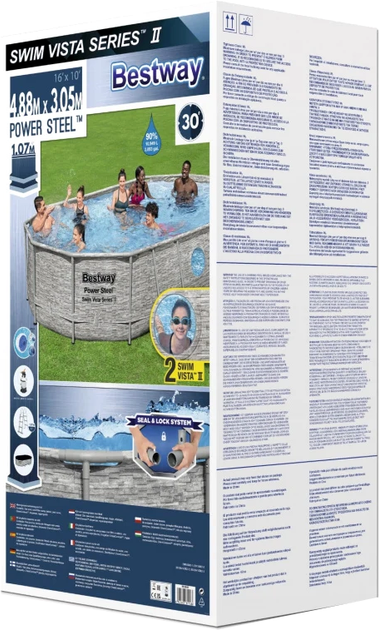 - Розміри басейну: 488 x 305 x 107 см — комфортні розміри для сімейного відпочинку.