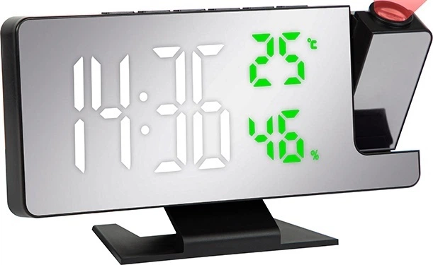 Годинник оснащений світлодіодним проектором, який дозволяє відображати час на стіні або стелі. Кут проекції можна легко регулювати, адаптуючи його до своїх потреб. Завдяки цьому навіть у темряві ви зможете прочитати час, не дістаючи телефон і не перериваючи сон. Функція ввімкнення/вимкнення проекції одним натисканням кнопки робить це рішення максимально зручним.