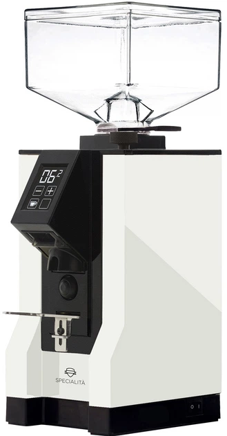 Eureka Mignon Specialita 15BL Білий — це високоякісна автоматична кавомолка для домашнього використання, створена для тих, хто прагне отримувати стабільний і професійний помел еспресо. Вона оснащена тихим двигуном, сенсорною панеллю керування та плоскими загартованими жорнами діаметром 55 мм, які забезпечують рівномірне та точне подрібнення. Завдяки безступінчастому регулятору помелу можна легко налаштувати тонкість під еспресо або грубіший помел. Сенсорний екран дозволяє програмувати одинарну та подвійну дозу, працювати в безперервному режимі та контролювати лічильник порцій, а зручна вилка‑тримач активує помел при натисканні портафільтром. Міцний металевий корпус у білому кольорі з чорною панеллю поєднується з прозорим бункером на 300 г зерен, створюючи стильний промисловий дизайн. Модель оснащена технологіями ACE для запобігання грудкуванню та Silent Technology для тихої роботи, а потужний двигун 310 Вт (1350 об/хв) забезпечує продуктивність 1.4–1.8 г/с для еспресо та до 2.5 г/с для грубішого помелу. Виготовлена в Італії, вона стане надійним інструментом для вимогливих домашніх бариста.