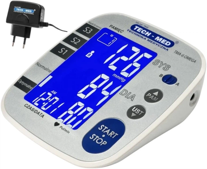 Тонометр Tech-Med TMA-6 OMEGA — це автоматичний плечовий прилад для вимірювання артеріального тиску та пульсу, який працює за осцилометричним методом і забезпечує точні результати. Він оснащений функцією виявлення аритмії, індикатором правильного розташування манжети та великим дисплеєм із чіткою індикацією. Це сучасний тонометр, який поєднує точність, технологічність і комфорт, забезпечуючи надійний щоденний контроль артеріального тиску та пульсу вдома.