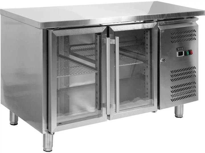 Стіл холодильний YATO YG-05252 має об’єм 282 літри та оснащений двома скляними дверима з подвійним загартованим склом, що забезпечує надійну теплоізоляцію та ефективну експозицію продуктів. Виконаний із високоякісної нержавіючої сталі, він відзначається міцністю, довговічністю та сучасним дизайном, який гармонійно вписується у професійні кухні, бари та ресторани. Робочий діапазон температур становить від +2°C до +8°C, що дозволяє зберігати різні види продуктів у свіжому стані. Оснащений електронним контролером із цифровим дисплеєм для точного налаштування параметрів, а також енергоощадним LED-освітленням, яке підкреслює вигляд продукції. Використовує екологічний холодоагент R290, працює від стандартної мережі 230 V та відповідає високим вимогам енергоефективності. Це професійне рішення для гастрономії, яке поєднує функціональність, місткість і стильний вигляд, забезпечуючи комфортну роботу персоналу та привабливу презентацію товарів.