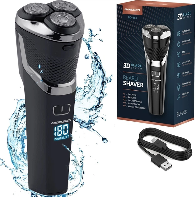 Електробритва Berdsen BD-268 — це ідеальне рішення для сучасних чоловіків, які цінують комфорт та бездоганний вигляд. Пристрій оснащений роторною головкою зі сталевими лезами високої якості, які забезпечують точне та гладке гоління, адаптуючись до контурів обличчя. Модель підтримує гоління на мокро та на сухо, що дозволяє вибрати найбільш комфортний спосіб догляду, а вбудований LCD-дисплей відображає рівень заряду акумулятора та швидкість обертів, забезпечуючи повний контроль над процесом.