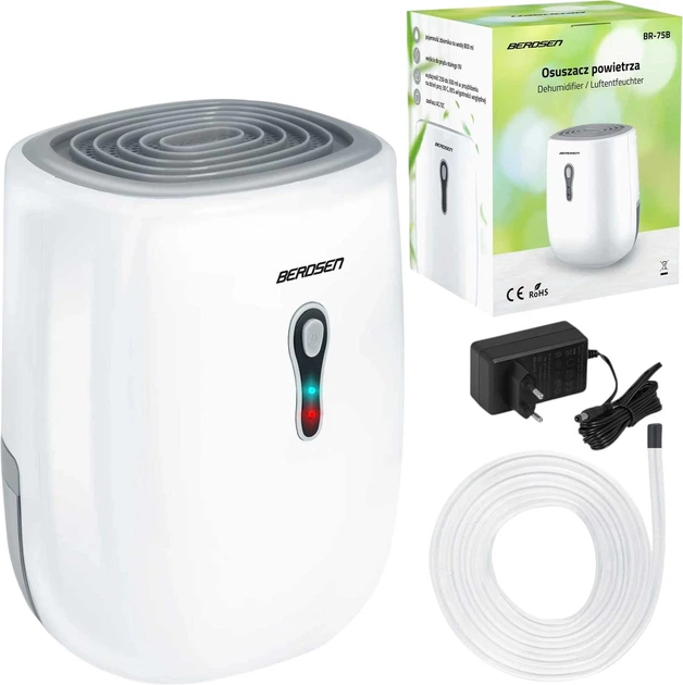 Осушувач повітря Berdsen BR-75B — це ефективний та елегантний пристрій, який надійно вирішує проблему надмірної вологості в приміщенні. Завдяки використанню сучасної технології Пельтьє (термоелектричного модуля), прилад працює без шумного компресора, що забезпечує йому надзвичайну тишу — максимальний рівень шуму становить лише 34 дБ. Модель оснащена резервуаром ємністю 800 мл і забезпечує продуктивність осушення близько 300 мл на добу (при 30°C та 80% вологості), що робить його ідеальним для невеликих кімнат, ванних або гардеробних.