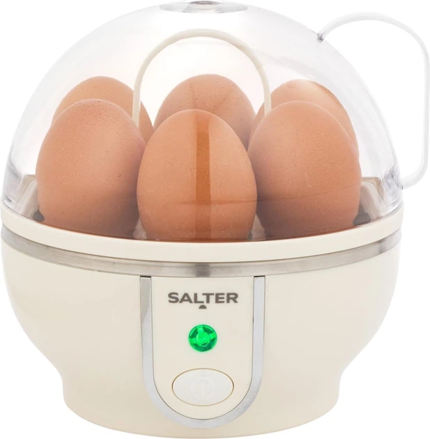 Яйцеварка Salter Retro Collection — це стильний та компактний пристрій потужністю 450 Вт, який дозволяє щоразу готувати ідеальні яйця некруто, в мішечок або вкруту. Модель розрахована на одночасне приготування до 7 яєць, що робить її чудовим рішенням для сімейного сніданку. Корпус виконаний із надійного поліпропілену (PP) у приємному кремовому кольорі, а прозора кришка з полікарбонату (PC) дозволяє спостерігати за процесом, доповнюючи вінтажний дизайн кухні.