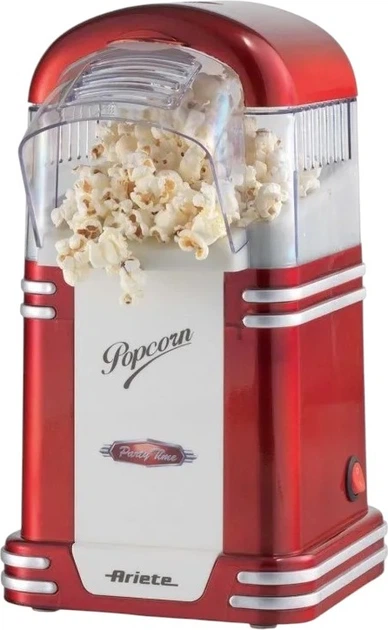 Апарат для приготування попкорну Ariete 2954 — це стильний пристрій у ретро-дизайні 50-х років, який дозволяє швидко приготувати корисну закуску для домашнього кіноперегляду. Завдяки інноваційній технології Hot Air, зерна кукурудзи обробляються виключно гарячим повітрям без використання олії чи жиру. Це робить попкорн низькокалорійним, зберігаючи при цьому всі природні вітаміни та антиоксиданти. Прилад має високу потужність 1100 Вт, що гарантує миттєве нагрівання та приготування порції свіжих ласощів за лічені хвилини лише одним натисканням кнопки.