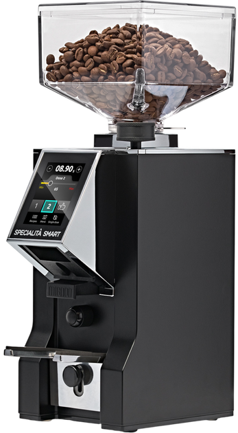 Eureka Mignon Specialita Smart 16CR Czarny to innowacyjny, wysokiej jakości młynek do kawy, przeznaczony dla osób wymagających absolutnej precyzji i powtarzalności w każdej filiżance. Wyposażony jest w technologię odległości żaren, która pozwala na pełną kontrolę ustawień mielenia i łatwe znalezienie punktu zerowego, gwarantując powtarzalne rezultaty. Inteligentny system sterowania pomaga dobrać idealny stopień zmielenia do każdej metody parzenia, a nowy, 2.8-calowy ekran dotykowy oferuje szybki wybór stopnia zmielenia, książkę kucharską, programowalne dawki oraz tryb pojedynczego mielenia. Płaskie, hartowane stalowe żarna o średnicy 55 mm zapewniają wysoką wydajność – 1.8-2.5 g/s dla espresso i do 3.2 g/s dla metod alternatywnych. Metalowy dzióbek zapewnia precyzyjny przepływ kawy, a wzmocniony metalowy widelec pozwala na pracę bez użycia rąk z dowolnym uchwytem filtra. Nowy, 300-gramowy pojemnik na kawę, cicha technologia, system zapobiegający zbrylaniu ACE i bezstopniowa regulacja mikrometryczna sprawiają, że ten model jest niezwykle wygodny i wydajny. Dzięki kompaktowym wymiarom (348 × 120 × 191 mm) i wadze 6.5 kg idealnie zmieści się w każdej domowej kawiarce, zapewniając codzienne mielenie na poziomie profesjonalnym.