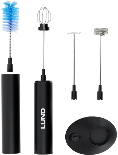 Спінювач молока LUND 68478 — це бездротовий багатофункціональний прилад 4 в 1, призначений для спінювання молока, збивання білків та приготування молочних коктейлів. Він працює від акумулятора 3.7 V, має потужність 10 Вт і поєднує компактність із високою ефективністю. Корпус виготовлений із ABS‑пластику та нержавіючої сталі 304, що забезпечує довговічність і легке очищення. Розміри пристрою становлять 32 × 32 × 239 мм, тому він зручний у використанні та зберіганні. Він підходить для щоденного приготування кавових напоїв, десертів і легких коктейлів, забезпечуючи швидку та пишну піну.
