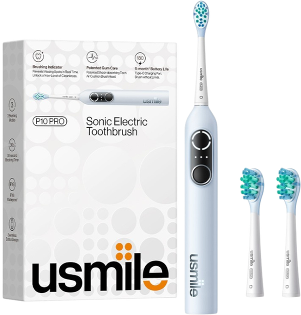 Електрична зубна щітка Usmile P10 PRO Blue — це високоефективний інструмент для щоденного догляду за порожниною рота, який поєднує потужність, делікатність та інноваційні технології. Завдяки 34 000 коливань на хвилину щітка видаляє до 97% зубного нальоту, забезпечуючи глибоке очищення та відчуття свіжості після кожного використання. Три режими роботи дозволяють підібрати оптимальний варіант для чутливої емалі, щоденного очищення або відбілювання. Система 3D Clean ефективно очищає міжзубні проміжки, а датчик тиску захищає ясна від надмірного натискання. Одного заряду вистачає до 180 днів, що робить щітку ідеальною для подорожей. Вбудований 2‑хвилинний таймер із зонним поділом допомагає дотримуватися рекомендацій стоматологів, а водонепроникність IPX8 гарантує безпечне використання у душі. Нековзка ручка забезпечує комфортний та надійний хват. Це стильне та функціональне рішення для тих, хто прагне бездоганної чистоти та здорової усмішки.