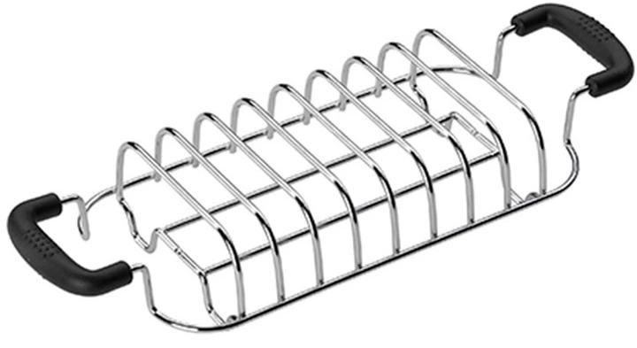 Решітка для підігріву булочок Smeg TSBW01 — це практичний аксесуар, який дозволяє швидко та рівномірно підігріти вже готові тости, булочки чи хліб, щоб подати їх до столу ще теплими. Завдяки пластиковим термостійким ручкам решітку зручно та безпечно переносити, не ризикуючи обпектися. Аксесуар повністю сумісний із тостерами Smeg TSF01 та TSF03, доповнюючи їх функціональність і роблячи процес сервірування ще комфортнішим. Після використання решітку можна легко помити — вона підходить для миття в посудомийній машині, що значно спрощує догляд. Розміри: 51 × 278 × 103 мм. Стильний, зручний і продуманий до дрібниць аксесуар, який стане корисним доповненням до вашої кухні.