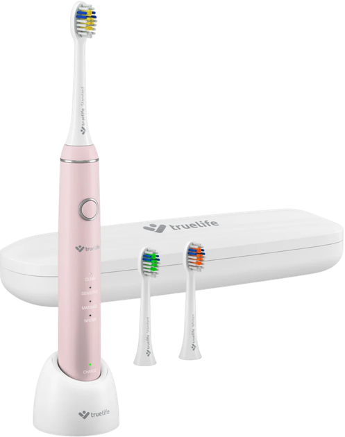 Електрична зубна щітка TrueLife SonicBrush Compact у рожевому кольорі — це ефективне та стильне рішення для щоденного догляду за зубами, оснащене вдосконаленою звуковою технологією SonicTrue, яка забезпечує до 70 000 рухів за хвилину для максимального видалення нальоту. Модель пропонує 4 режими роботи — очищення, догляд для чутливих зубів, відбілювання та масаж ясен, що дозволяє підібрати оптимальний режим для будь-яких потреб. Завдяки компактному розміру та дорожньому футляру щітку зручно брати із собою, а потужний акумулятор забезпечує до 30 днів роботи без підзарядки. Ніжні вібрації дбайливо впливають на емаль, а завдяки ефекту мікрокавітації паста та вода проникають у міжзубні проміжки для глибшого очищення. У комплект входять три змінні насадки (чутлива, стандартна, відбілююча), зарядна станція та футляр, що робить SonicBrush Compact повноцінним набором для якісної гігієни ротової порожнини вдома та в подорожах.