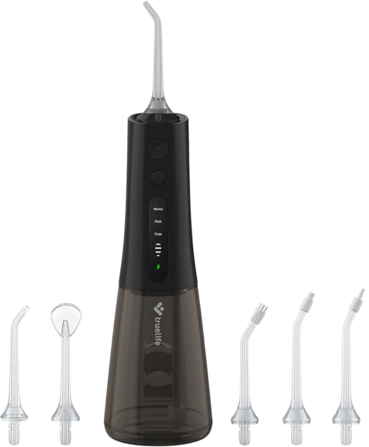 Іригатор TrueLife AquaFloss L100 у чорному кольорі — це компактний та ефективний пристрій для щоденного догляду за міжзубними проміжками, який забезпечує глибоке очищення там, де звичайна щітка чи нитка часто безсилі. Він оснащений трьома режимами роботи, серед яких особливо корисний POINT‑режим — спрямовані імпульсні розпилення високого тиску швидко та точно видаляють залишки їжі навіть із найвужчих ділянок. Резервуар об’ємом 300 мл має зручне верхнє та бокове наповнення, чого достатньо для повного двоххвилинного циклу, який контролюється вбудованим таймером. Пристрій працює автономно, заряджається через USB і забезпечує до 14 днів роботи при використанні двічі на день. На дисплеї відображаються режим та рівень заряду, а функція пам’яті автоматично відтворює останні налаштування. У комплект входять 6 спеціалізованих насадок для різних стоматологічних потреб: стандартні, ортодонтична, пародонтальна, для видалення нальоту та очищення язика. Технології StreamTrue та PulseTrue забезпечують ефективне видалення нальоту, масаж ясен і покращення кровообігу, роблячи AquaFloss L100 зручним, економічним і дбайливим рішенням для комплексної гігієни ротової порожнини вдома та в подорожах.