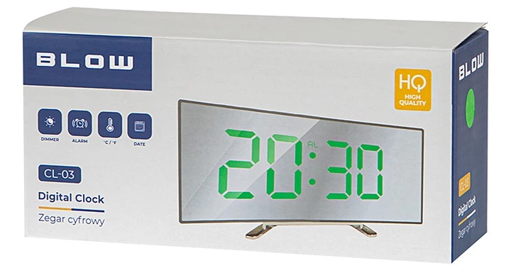 Годинник оснащений великим, читабельним LED‑екраном, який відображає час у 12‑ або 24‑годинному форматі. Зелені цифри добре видно як вдень, так і вночі, а функція миготливих двокрапок додає динамічного акценту. Завдяки функції перемикання режимів дисплей показує не лише час, але й дату, температуру та статус нічного режиму – усе доступне після натискання однієї кнопки MODE.