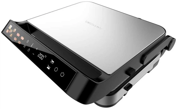 Гриль Cecotec Rock’nGrill 2000 PerfectCook — це потужний контактний електрогриль на 2000 Вт, який забезпечує швидке та рівномірне приготування завдяки температурному діапазону 80 – 230 °C і робочій поверхні 30 × 23 см. Модель оснащена інтелектуальним термощупом, що дозволяє досягати ідеального ступеня прожарювання, а сенсорна панель з LED‑екраном та 7 автоматичних програм роблять процес приготування максимально простим і точним. Антипригарне покриття RockStone та знімні елементи, придатні для миття в посудомийній машині, забезпечують легкий догляд. Конструкція відкривається до 105°, що додає зручності під час використання. Це сучасний і функціональний гриль для тих, хто хоче отримувати стабільно відмінний результат без зайвих зусиль.