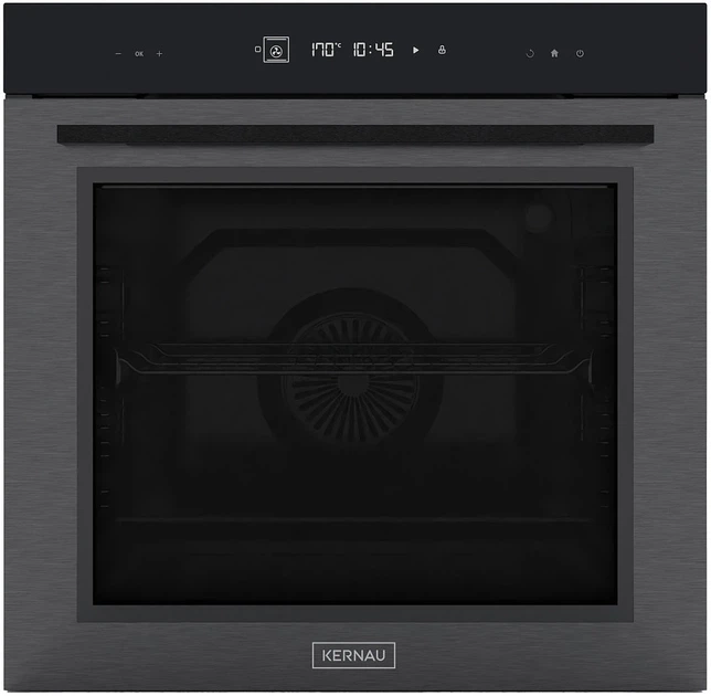 Духова шафа електрична Kernau KBO 1281 TC Gun Metal вражає своїм стильним дизайном, поєднуючи кольори сірого та чорного, що надає їй сучасного вигляду. Висота, ширина та глибина складають 595 мм, 595 мм і 587 мм відповідно, а вага – 33.2 кг, що підходить для вбудованої установки у вашій кухні. Ця електрична духова шафа має клас енергоефективності A та споживає всього 0.85 кВт·год за цикл, що робить її енергоефективною. Великий об'єм у 80 літрів дозволяє готувати страви для всієї родини, а потужність приєднання в 2.5 кВт забезпечує швидке приготування їжі. Діапазон температур від 40 до 250°C дозволяє точно контролювати процес приготування. Серед функцій – термообіг, 3D термообіг та 12 інших функцій для різноманітного приготування, а також швидке нагрівання й гриль. Електронне сенсорне управління та LED-дисплей спрощують користування. Додаткові особливості включають панорамні двері з терморефлексивним покриттям, що поліпшує ефективність приготування. Шафа оснащена металевими драбинками та телескопічними направляючими для зручності використання. Безпека забезпечується батьківською блокадою та потрійним склінням у дверях. Охолодження корпусу запобігає перегріву. Внутрішня поверхня, виготовлена з емалі PerfectClean, полегшує процес чищення.