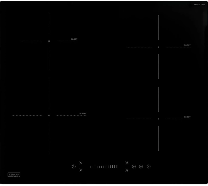 Варильна поверхня індукційна Kernau BKIH 6418-4B виконана у стильному чорному кольорі, пропонує високу функціональність та естетичність, що робить її ідеальним вибором для сучасної кухні. Має габарити 58 мм у висоту, 590 мм у ширину та 520 мм у глибину і важить лише 8 кг, тож легко підходить для стандартної ніші шириною 60 см. Оснащена чотирма зонами нагріву із дев'ятьма рівнями потужності, загальною потужністю підключення 7.2 кВт та напругою живлення 220-240 В, дозволяє швидко та ефективно готувати без зайвих витрат електроенергії. Варильна поверхня має зручний слайдер для управління з інтуїтивно зрозумілим дисплеєм. Додаткові можливості, такі як таймер та функція підсилювача, забезпечують комфорт у використанні. Передбачене автоматичне вимкнення та індикатор залишкового тепла підвищують вашу безпеку, а блокування від дітей запобігає випадковим змінам налаштувань. Керамічне скло поверхні додає естетичної привабливості, а можливість підключення на 230 В забезпечує гнучкість установки. Вона стане надійним вибором для тих, хто цінує простоту, функціональність та стиль.