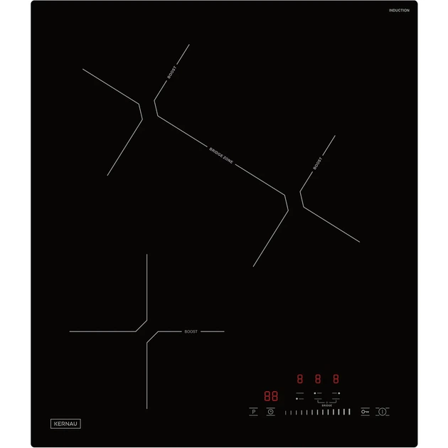 Варильна поверхня індукційна Kernau KIH 434-3B поєднує в собі елегантний чорний дизайн і передові технології для вашої кухні. З габаритами 450 мм в ширину, 520 мм в глибину та висотою 58 мм, вона ідеально підходить для компактних кухонь, забезпечуючи зручність і функціональність. Завдяки трьом зонам нагріву, кожна з яких має потужність до 2100 Вт, ви можете швидко нагріти їжу, налаштувавши один з дев'яти рівнів потужності. Висока потужність підключення 5.7 кВт і можливість роботи від стандартної напруги 220-240 В забезпечують високу продуктивність і енергоефективність. Кулінарні можливості розширюються завдяки функціям, таким як таймер, підсилювач, підключення зон приготування та інтегроване автоматичне вимкнення. Безпека на кухні забезпечується функцією блокування від дітей. Управління здійснюється за допомогою зручного слайдера, й інформація відображається на сучасному дисплеї. Варильна поверхня легко інтегрується у будь-який інтер'єр, не підтримуючи встановлення врівень зі стільницею. Вона розроблена для щоденного комфорту та безпеки завдяки тепловому індексу та можливості поєднання полів, що робить її ідеальним рішенням для сучасного дому.