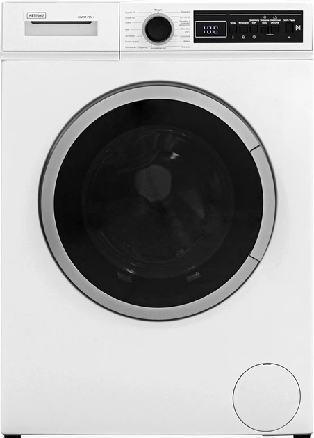 Пральна машина Kernau KFWM 7512 I — це біла фронтальна модель із завантаженням 7 кг, максимальною швидкістю віджиму 1000 об/хв та класом енергоефективності C. Вона пропонує 15 програм, серед яких: Бавовна, Еко 40–60°C, Бавовна з попереднім пранням, Бавовна 20°, Кольорові, Вовна, Полоскання, Антиалергенна, Віджимання/Зціджування, Ручне прання, Синтетика, Змішані тканини, Темний одяг/Джинси, Швидко 60’ і Швидко 15’. Машина підтримує автоматичне зважування, регулювання температури та швидкості віджиму, має відкладений старт, систему контролю піни, а також додаткові функції: зменшений час прання, додаткове полоскання, індикатор часу, що залишився та Старт/Пауза. Рівень шуму під час віджиму становить 73 дБ, залишкова вологість — 62 %, витрата води — 45 л за цикл, а тривалість еко‑програми — 208 хвилин. Керування електронне через кнопки, є дисплей, передбачено блокування від дітей та протиковзкі ніжки. Машина оснащена індукційним двигуном, підтримує технологію Еко‑Логіка та має змінні підшипники. Це надійна, економна та функціональна пральна машина для щоденного використання.