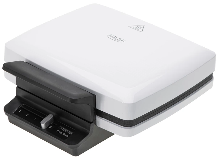 Вафельниця Adler AD 3085 — це зручний і практичний прилад із антипригарним покриттям нагрівальних пластин, що дозволяє легко готувати вафлі без пригорання. Вона оснащена регулюванням температури, ручкою з холодним дотиком, а також двома індикаторами — живлення та готовність, що робить процес приготування простим і контрольованим. Пристрій має стійкі гумові ніжки, готує вафлі розміром 2 × (9 × 13 см) та має компактні габарити. Довжина шнура живлення становить 80 см, тип штекера — E/F, колір корпусу — білий. Номінальна потужність — 1200 Вт, максимальна — 1800 Вт, живлення — 220–240 В ~ 50/60 Гц. Це надійна вафельниця для швидкого та смачного приготування домашніх вафель.