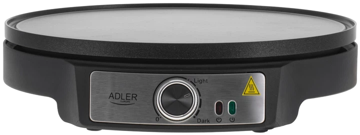 Млинниця Adler AD 3093 — це зручний прилад із знімною двосторонньою пластиною, що підходить не лише для млинців, а й для тортиль, оладок та картопляних дерунів. Вона оснащена антипригарним покриттям, високим бортиком для запобігання розливанню тіста та плавним регулюванням температури. Діаметр нагрівальної плити становить 30 см, є два індикатори — живлення та готовність, а також стійкі гумові ніжки та відсік для зберігання шнура. Прилад можна зберігати у вертикальному положенні, у комплекті є аксесуари для розмазування тіста та перевертання млинців. Потужність — 1200 Вт, максимальна — 1600 Вт, живлення — 220–240 В ~ 50–60 Гц, довжина шнура — 75 см. Це практичний та універсальний пристрій для швидкого приготування рівних і рум’яних млинців.