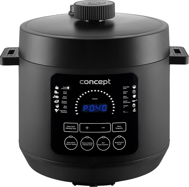 Мультиварка Concept CK6001 — це універсальний кухонний помічник, який поєднує приготування під тиском і повільне приготування, дозволяючи легко готувати різноманітні страви в одній чаші об’ємом 5,8 л. Вона оснащена металевою внутрішньою чашею з антипригарним покриттям, зручною панеллю керування чеською та англійською мовами та цифровим дисплеєм для інтуїтивного використання. Пристрій пропонує 12 попередньо запрограмованих режимів — від супів і м’яса до йогурту та приготування на пару — а також ручний режим «Зроби сам» для повного контролю. Функції відкладеного старту та підтримки тепла роблять приготування ще зручнішим, а захист від перегріву та низький рівень шуму 50 дБ забезпечують безпечну та комфортну роботу. Мультиварка працює від мережі 220–240 В і має потужність 1000 Вт, що робить модель CK6001 надійним вибором для щоденного приготування корисних і смачних страв.