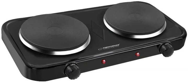 Настільна електроплита EKH010K від компанії Esperanza має дві конфорки й керована поворотними перемикачами.